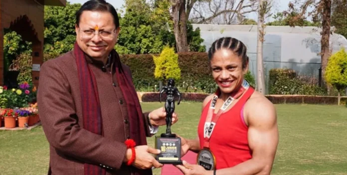 मुख्यमंत्री पुष्कर सिंह धामी ने शुक्रवार को मुख्यमंत्री आवास स्थित मुख्य सेवक सदन में अंतरराष्ट्रीय महिला बॉडीबिल्डर प्रतिभा थपलियाल को उनकी उत्कृष्ट उपलब्धियों के लिए सम्मानित किया। इस अवसर पर मुख्यमंत्री ने उन्हें शॉल ओढ़ाकर और स्मृति चिह्न भेंट किया।