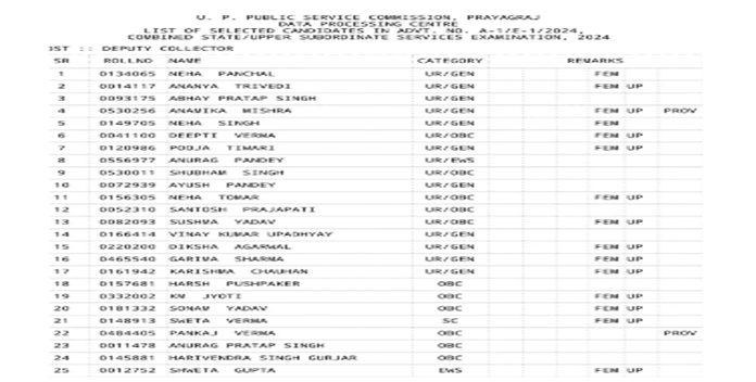 उत्तर प्रदेश लोक सेवा आयोग ने पीसीएस 2024 का फाइनल रिजल्ट घोषित कर दिया है। इस बार परीक्षा में नेहा पांचाल ने पहला स्थान हासिल किया है। दूसरे स्थान पर अनन्या त्रिवेदी और तीसरे स्थान पर अभय प्रताप सिंह रहे।